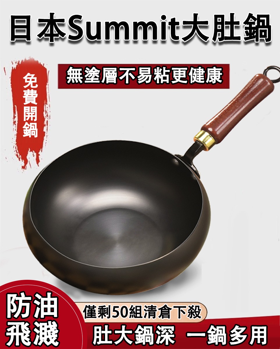 5分鐘前日本Summit無塗層大肚不粘鍋,肚大鍋深,油星不逃,無塗層物理不粘更健康,僅剩50組限時限量清倉下殺。 - 【僅限今日!】Summit炒鍋28cm1件(送鍋蓋+鐵鏟)-NT$ 1480